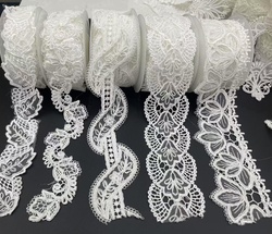 Affinità all'ingrosso su misura del nastro di pizzo bianco del cavo del velo da sposa francese ricamato in pizzo chimico Trim per il vestito di mussola della tenda